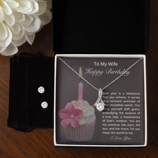 To my wife happy birthday Alluring Beauty Necklace and Cubic Zirconia Earring Set
